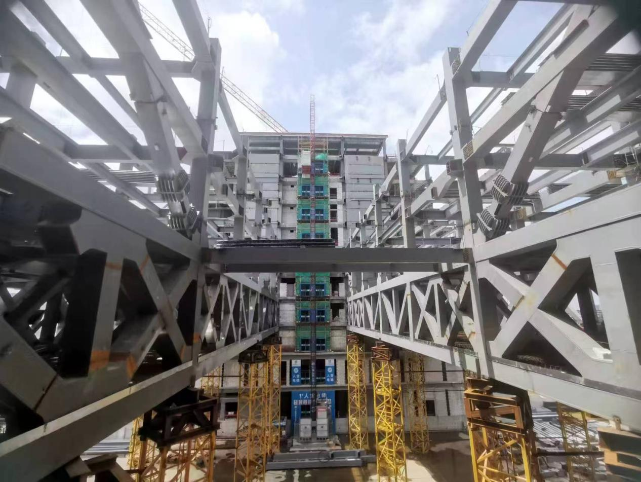 過去五年間,團隊肩負雙重使命,既要積極探索新興技術(shù)領(lǐng)域,又要緊密貼合實際需求,開展針對性技術(shù)攻關(guān)。面對大跨度建筑高效承載與裝配式鋼結(jié)構(gòu)工廠化制造的行業(yè)難題,團隊深入剖析痛點,歷經(jīng)多次驗證、迭代與優(yōu)化,最終成功突破了技術(shù)“瓶頸”,創(chuàng)新研發(fā)出獲獎專利——“大跨度支座跨中協(xié)同預應力箱形連續(xù)鋼梁柱結(jié)構(gòu)”。該新型結(jié)構(gòu)可優(yōu)化結(jié)構(gòu)受力分布,顯著提升彈性承載力,有效減少鋼梁跨中撓度與支座變形,既增強了大跨度建筑韌性,又滿足了受損建筑快速功能恢復的特殊需求。為不斷提升自身技術(shù)水平,團隊還積極開展交叉學科研究,在技術(shù)與進度雙重壓力的嚴峻考驗下,憑著“死磕”到底的韌勁,各司其職、緊密協(xié)作,共同推動了多項配套產(chǎn)品的成功研發(fā)與落地,為行業(yè)整體技術(shù)革新貢獻了重要力量。