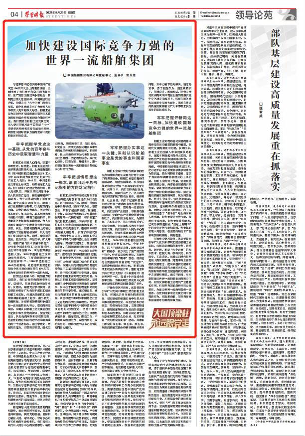9月29日,《學(xué)習(xí)時(shí)報(bào)》刊發(fā)中國船舶集團(tuán)黨組書記、董事長雷凡培署名文章《加快建設(shè)國際競(jìng)爭(zhēng)力強(qiáng)的世界一流船舶集團(tuán)》,現(xiàn)全文分享如下。