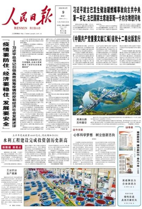 ▲《人民日報》2022年08月09日第01版