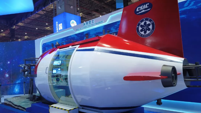 在進(jìn)博會期間,“深海勇士”號4500米載人作業(yè)潛水器模型裝置的一體式設(shè)備陳列在中國館,吸引參觀者“深入”潛水器內(nèi)部一探究竟。
