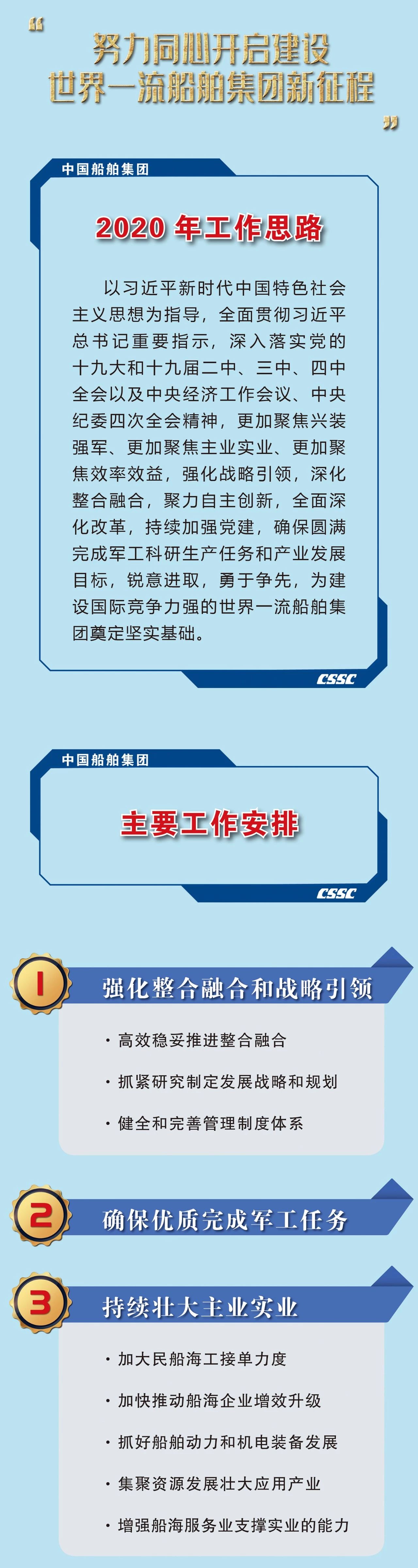 ??1月19日,在中國(guó)船舶集團(tuán)有限公司2020年度工作會(huì)議上,中國(guó)船舶集團(tuán)黨組書記、董事長(zhǎng)雷凡培作了題為《以習(xí)近平總書記重要指示為統(tǒng)領(lǐng) 奮力開啟建設(shè)世界一流船舶集團(tuán)新征程》的工作報(bào)告。