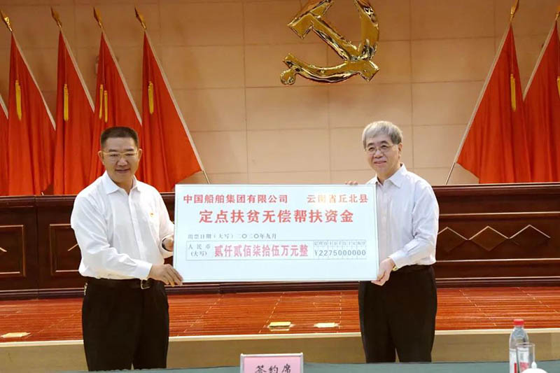 在中國(guó)船舶集團(tuán)?丘北縣定點(diǎn)扶貧工作座談會(huì)上,集團(tuán)公司和丘北縣舉行了無償幫扶資金捐贈(zèng)儀式、簽署了消費(fèi)扶貧框架協(xié)議,集團(tuán)公司產(chǎn)業(yè)扶貧基金運(yùn)營(yíng)公司太證資本與產(chǎn)業(yè)扶貧基金投資標(biāo)的公司立達(dá)爾簽訂了投資協(xié)議。