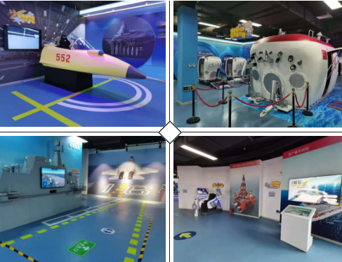 整個展館內分布著護航體驗區(qū)、VR綜合體驗區(qū)、航母艦室漫游體驗區(qū)、近海VR鉆井平臺體驗區(qū)、艦載機起飛體感指揮體驗區(qū)、航母艦載機空體驗區(qū)等,可以讓參觀者模擬駕駛我國船海重器,親身感受搏浪滄海、護衛(wèi)海疆的震撼與自豪,使得船舶館成為海洋特色鮮明、模型館藏豐富、互動體驗感強的軍事科普教育展館和軍事文化娛樂園區(qū)。