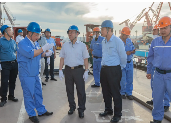 7月21日,工信部黨組成員、總工程師田玉龍到中國船舶集團(tuán)有限公司大連地區(qū)成員單位調(diào)研指導(dǎo)工作。田玉龍一行先后到中國船舶集團(tuán)第七六〇研究所、大連船舶重工集團(tuán)有限公司實(shí)地考察了有關(guān)試驗(yàn)場和在建船舶,聽取了兩家單位整體發(fā)展情況特別是科技創(chuàng)新方面的工作匯報(bào),并對(duì)下一步工作提出要求。