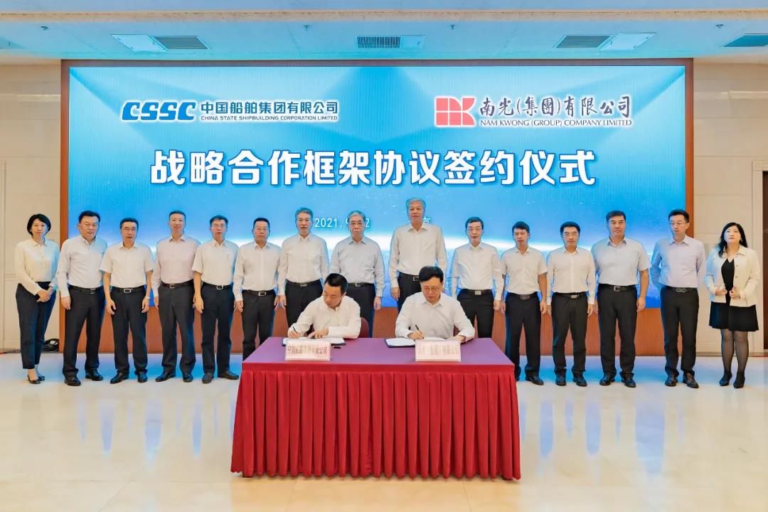 9月22日,中國船舶集團(tuán)有限公司與南光(集團(tuán))有限公司在京簽署戰(zhàn)略合作框架協(xié)議。中國船舶集團(tuán)黨組書記、董事長(zhǎng)雷凡培,南光(集團(tuán))董事長(zhǎng)傅建國出席簽約儀式。中國船舶集團(tuán)黨組成員、副總經(jīng)理盛紀(jì)綱,南光(集團(tuán))副總經(jīng)理王彤彥分別代表雙方簽約。
