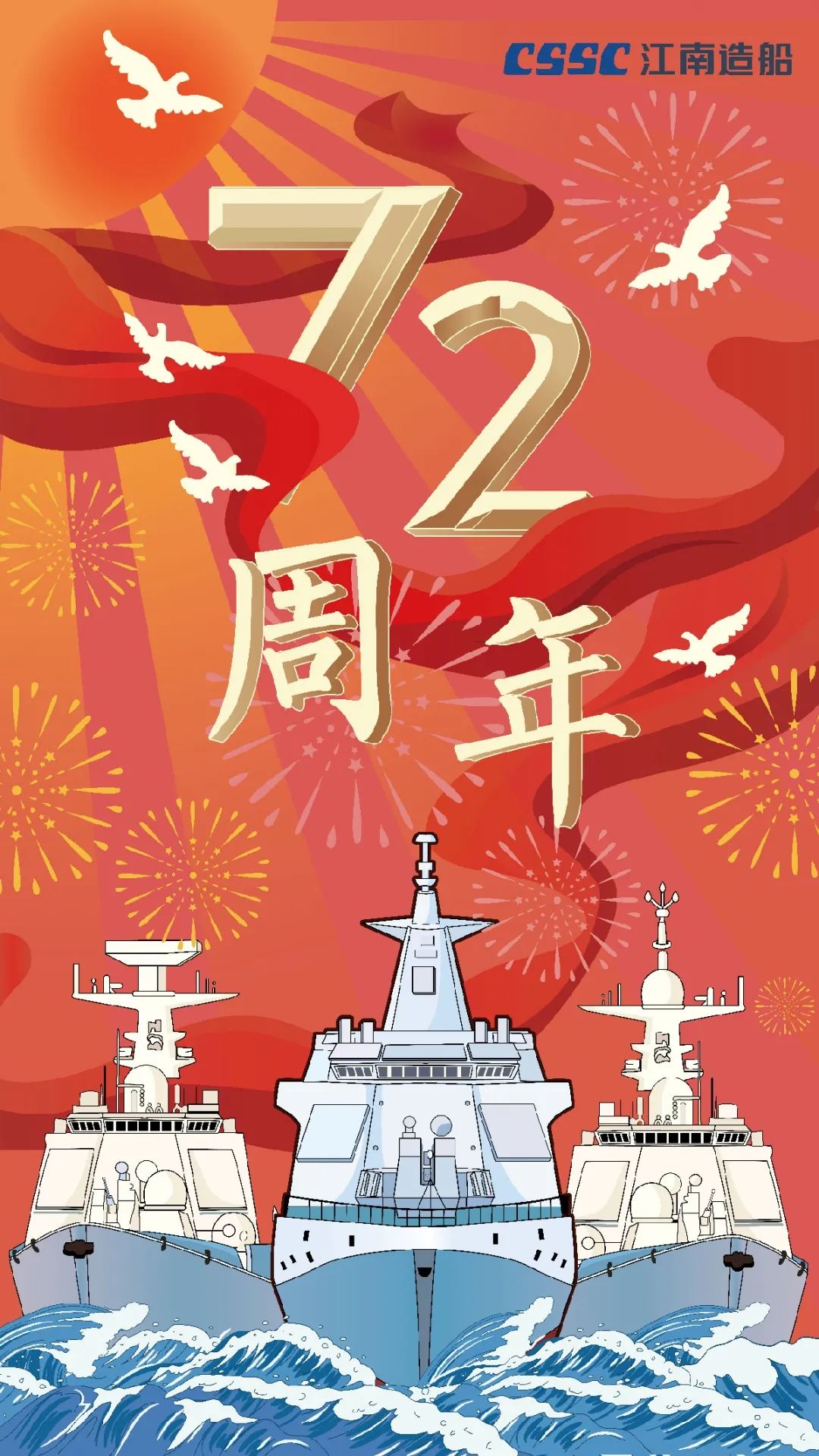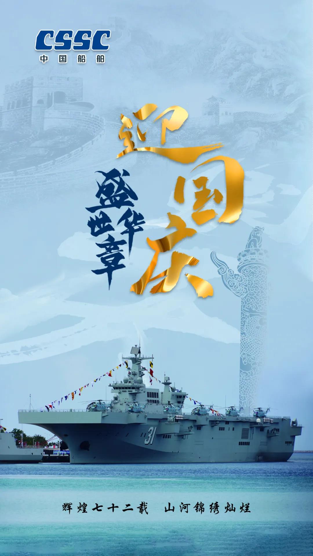 今天,我們迎來新中國72周年華誕。作為我國海軍裝備建設(shè)的主力軍,中國船舶大船集團(tuán)將不忘初心,牢記使命,堅定貫徹海洋強(qiáng)國、制造強(qiáng)國、科技強(qiáng)國國家戰(zhàn)略,聚焦主責(zé)主業(yè)、聚力興裝強(qiáng)軍,為實(shí)現(xiàn)中華民族偉大復(fù)興的中國夢而不懈奮斗。