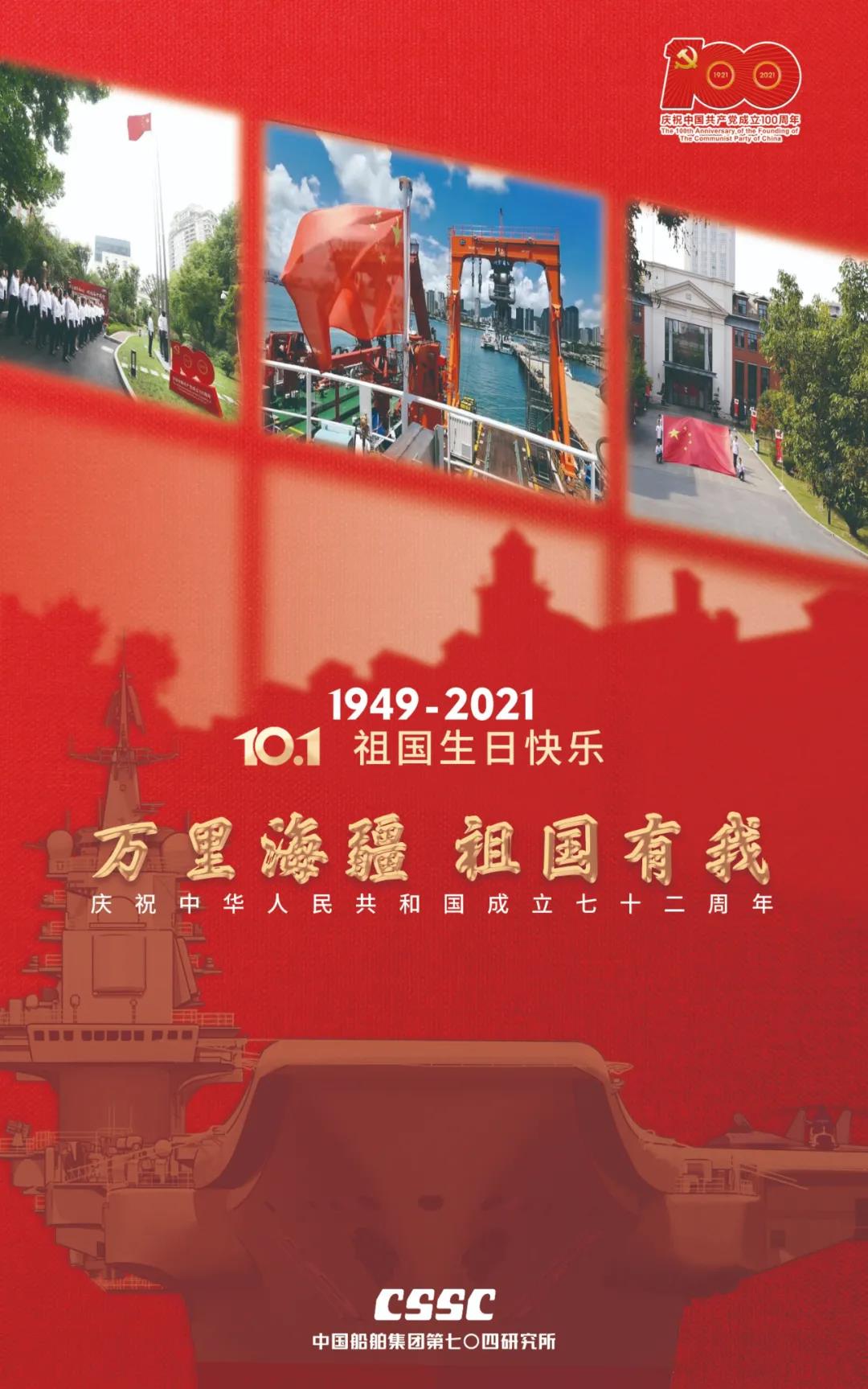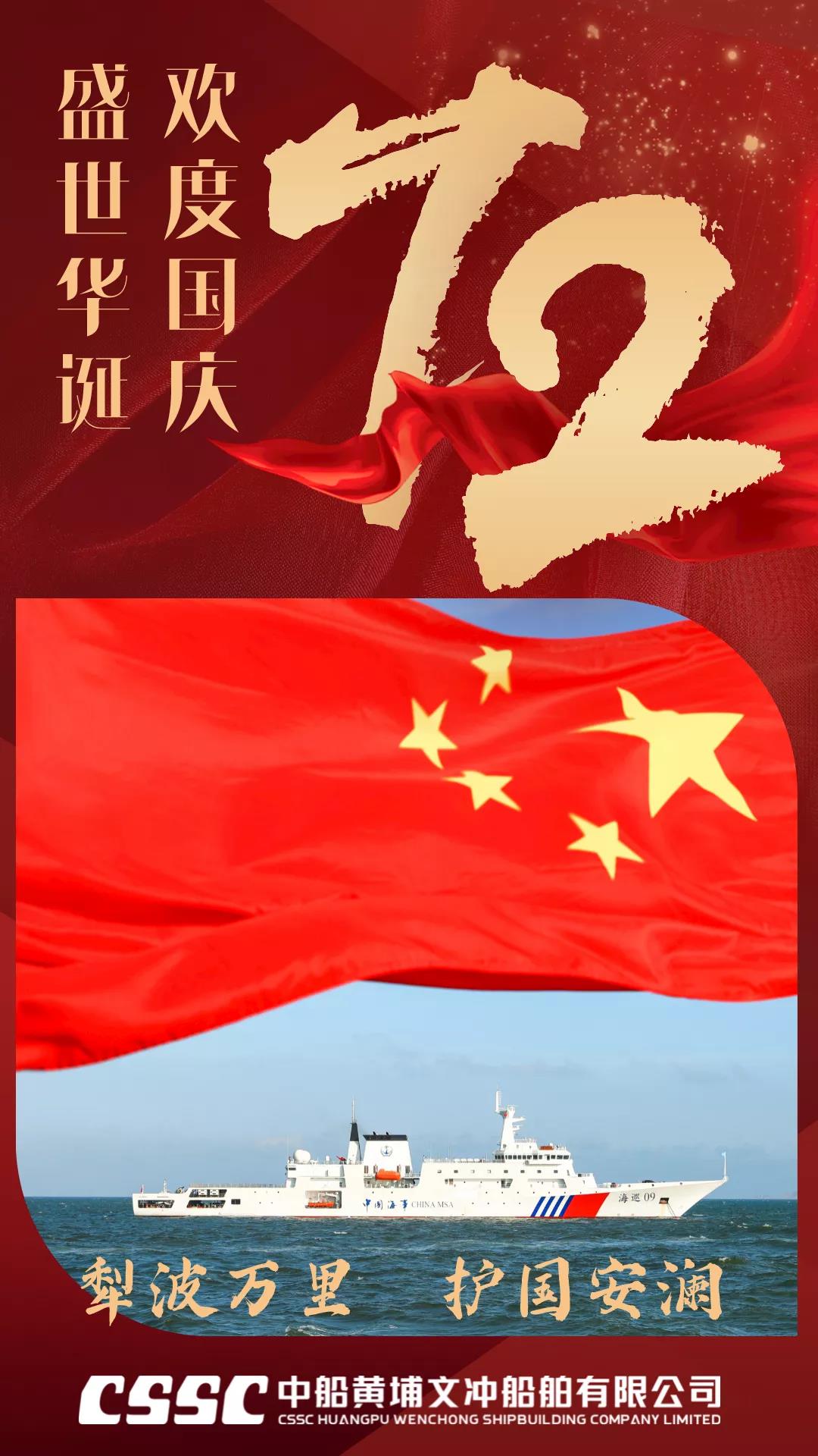 欣望江山千里秀,歡送祖國萬年春,中國船舶七〇九所祝福新中國72歲生日快樂,“中國號”巨輪劈波斬浪再創(chuàng)新輝煌!