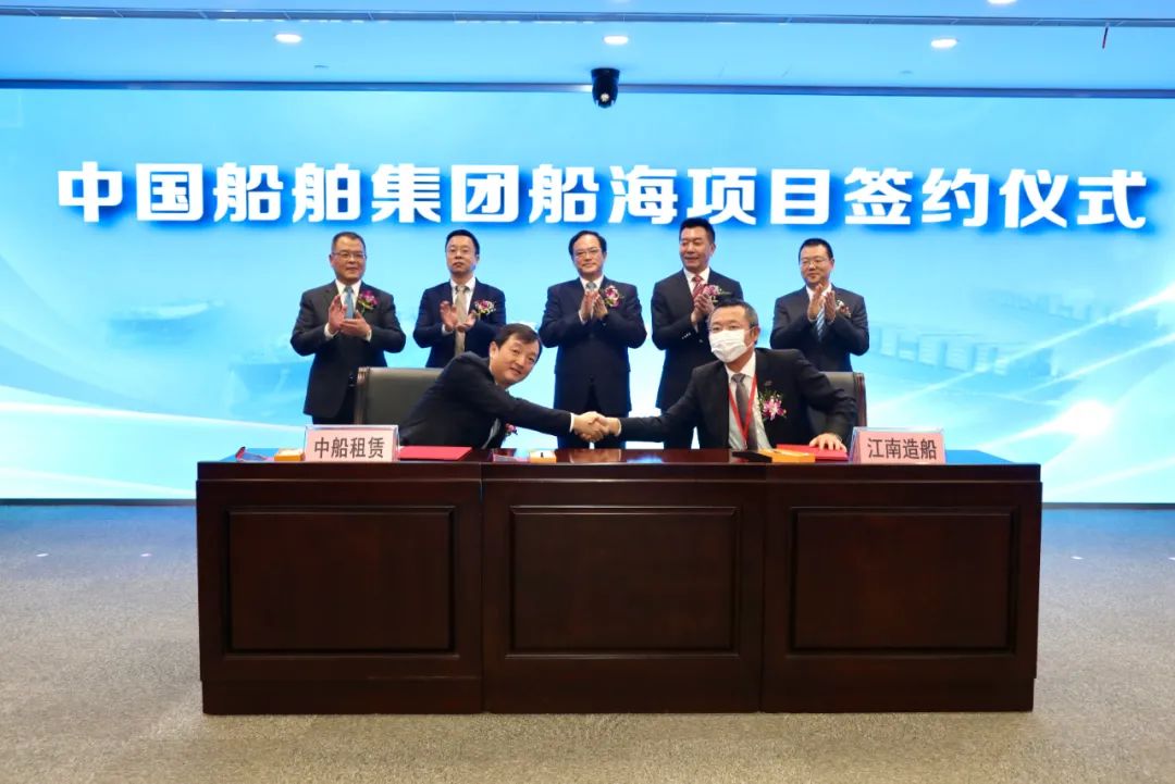 船舶建造合同簽約儀式上,在相關(guān)方領(lǐng)導(dǎo)的共同見(jiàn)證下,