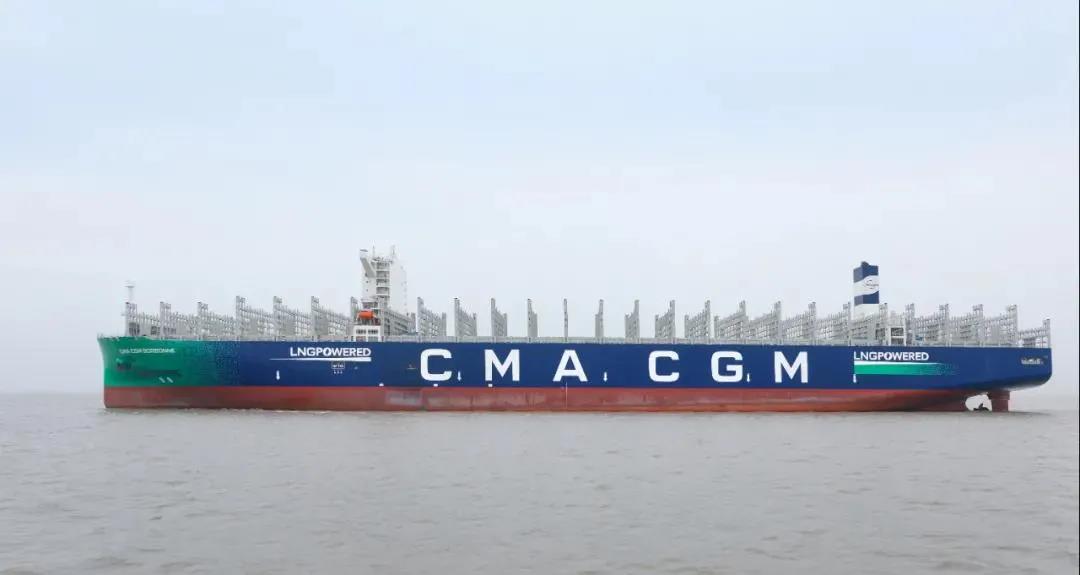 2021年6月29日,中國船舶集團自主研發(fā)設(shè)計建造的全球首創(chuàng)最大、最先進23000TEU雙燃料動力集裝箱船“達飛·索邦”號,在中國船舶集團旗下滬東中華命名,并交付給法國達飛海運集團。