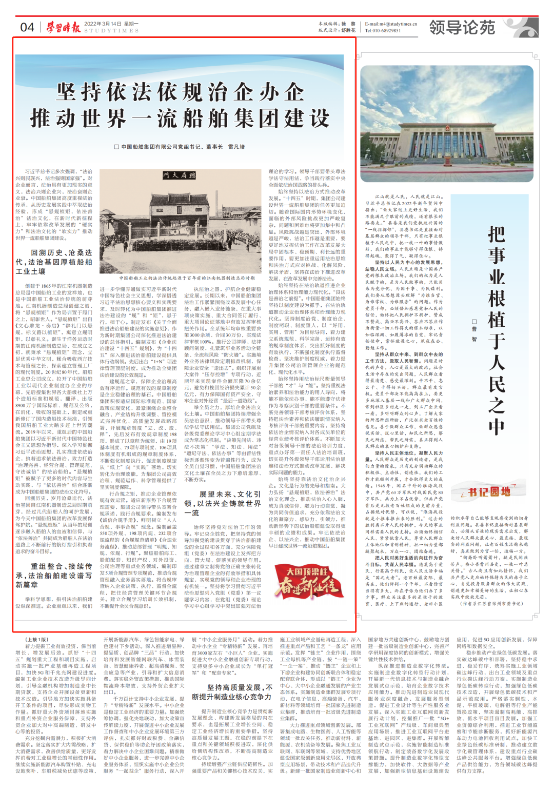 3月14日,《學(xué)習(xí)時(shí)報(bào)》刊發(fā)中國(guó)船舶集團(tuán)有限公司黨組書記、董事長(zhǎng)雷凡培的署名文章《堅(jiān)持依法依規(guī)治企辦企 推動(dòng)世界一流船舶集團(tuán)建設(shè)》,全文如下: