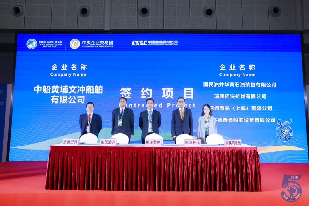 第五屆進(jìn)博會(huì)期間,中國船舶集團(tuán)旗下8家企業(yè)與18家國際合作伙伴先后進(jìn)行21個(gè)項(xiàng)目的集中簽約,累計(jì)總金額達(dá)4.5億美元,同比增長205.5%。項(xiàng)目涉及柴油機(jī)組、發(fā)電機(jī)組、船用吊機(jī)、通導(dǎo)系統(tǒng)、電力推進(jìn)系統(tǒng)、數(shù)字化網(wǎng)絡(luò)設(shè)備、LNG供氣系統(tǒng)、殷瓦鋼、再液化裝置等船舶建造領(lǐng)域的各類重要配套設(shè)備,為國際交易市場和全球供應(yīng)鏈的日益繁榮貢獻(xiàn)中國船舶力量。