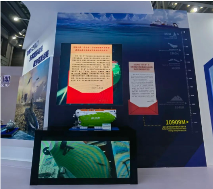 吸引眼球的還有“奮斗者”號(hào)載人潛水器,以及雪龍-2號(hào)、遠(yuǎn)望7號(hào)等深海極地重大裝備、航天測(cè)量船家族。在展臺(tái)處,不僅播放了“奮斗者”號(hào)萬(wàn)米深潛坐底激動(dòng)人心的畫(huà)面,還展示了習(xí)近平總書(shū)記的賀信,激勵(lì)中國(guó)船舶人踔厲奮發(fā)、勇毅前行。