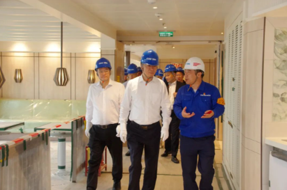 辛國斌一行深入考察國產(chǎn)首制大型郵輪建造現(xiàn)場,實(shí)地了解大型郵輪工程進(jìn)展和技術(shù)攻關(guān)情況,并前往集配中心對外高橋造船物流倉儲(chǔ)數(shù)字化建設(shè)和智能倉儲(chǔ)管理進(jìn)行調(diào)研。