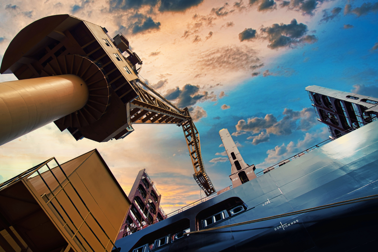落日余暉下,造船現(xiàn)場燈火通明,展現(xiàn)出一派繁忙景象。在五彩斑斕的晚霞襯托下,整個造船基地猶如寶石般熠熠生輝。