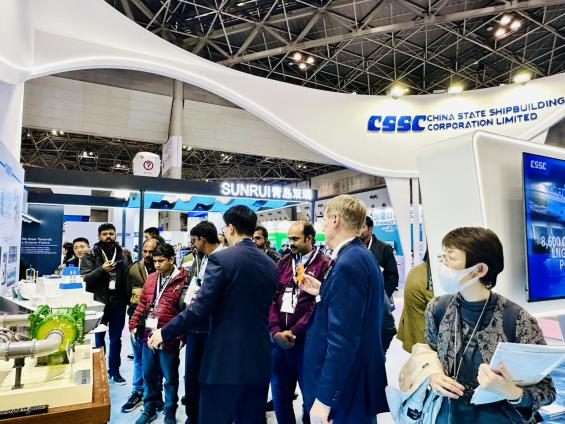 此次參展是集團公司首次以整體形象亮相日本東京國際海事展,以“共筑未來”為參展主題,設置集團總體區(qū)、低碳航運解決方案區(qū)、低碳環(huán)保配套設備區(qū)、未來船型區(qū)共4個展示區(qū)域,重點展示了引領行業(yè)發(fā)展的新一代船舶產品、“綠色、智能”的配套設備,以及面向未來市場需求的船型設計方案,充分彰顯中國船舶集團的國際化品牌形象和引領國際船舶科技發(fā)展的創(chuàng)新活力。