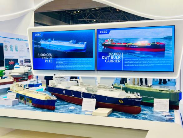 展會期間,國產大型郵輪、17.4萬立方米LNG船、8600車LNG雙燃料PCTC、9.9萬立方米VLEC、WinGD 9X92DF-2.0(-iCER)主機、船用LNG 供氣系統(tǒng)、船用碳捕捉系統(tǒng)、大口徑岸基智能裝卸系統(tǒng)等代表性產品悉數亮相,獲得海外市場高度關注。