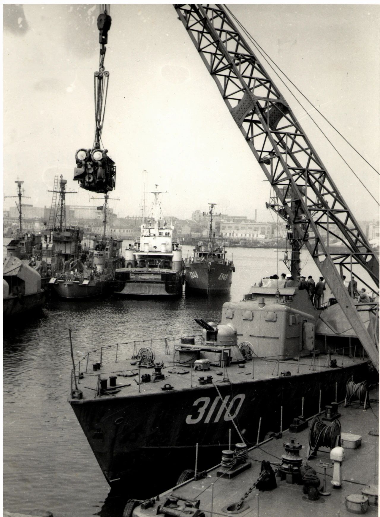 1950年廣州1950年,萬(wàn)山海戰(zhàn)功臣“前進(jìn)號(hào)”炮艇在工廠(chǎng)下水。