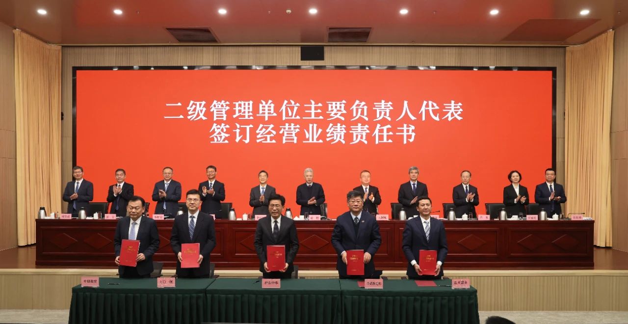 會(huì)議對(duì)2024年度中船集團(tuán)重大貢獻(xiàn)獎(jiǎng)、民品貢獻(xiàn)獎(jiǎng)、科技貢獻(xiàn)獎(jiǎng)和個(gè)人貢獻(xiàn)獎(jiǎng)進(jìn)行了表彰。徐鵬與二級(jí)管理單位主要負(fù)責(zé)人代表簽訂了2025年經(jīng)營(yíng)業(yè)績(jī)考核責(zé)任書。與會(huì)人員分組討論了工作報(bào)告,五家二級(jí)管理單位作了現(xiàn)場(chǎng)交流發(fā)言。