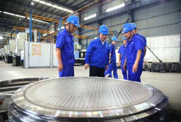 王國(guó)強(qiáng)深入科研生產(chǎn)一線(xiàn),調(diào)研了相關(guān)車(chē)間、實(shí)驗(yàn)室、勞模創(chuàng)新工作室,察看了智能制造中心、重點(diǎn)產(chǎn)品、相關(guān)技術(shù)進(jìn)展;慰問(wèn)了勞模工匠、一線(xiàn)員工,與他們就現(xiàn)場(chǎng)管理看板優(yōu)化、工藝改善等交流互動(dòng),勉勵(lì)他們健康生活、快樂(lè)工作,叮囑相關(guān)單位負(fù)責(zé)人要做好防暑降溫工作;聽(tīng)取了相關(guān)二級(jí)管理單位生產(chǎn)經(jīng)營(yíng)、深化改革、科技創(chuàng)新、人才培養(yǎng)、黨的建設(shè)等方面情況匯報(bào)。