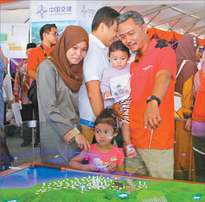 8月9日,馬來西亞彭亨州首府關丹,妮法婷和丈夫黎薩正在東海岸鐵路項目模擬線路沙盤前駐足研究。