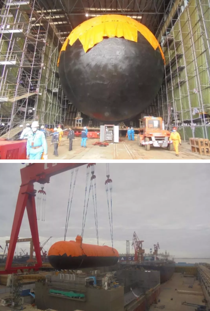 ????最終,江南造船成功完成兩個(gè)14000立方米Type C型單體罐駁運(yùn)吊裝任務(wù)。