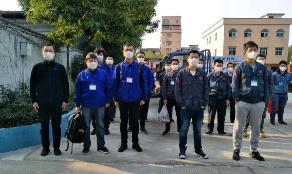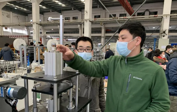 ????帶隊(duì)逆行的是鵬力塑造副總經(jīng)理王仕杰,一人承擔(dān)所有的外圍協(xié)調(diào)工作,不僅管好技術(shù)團(tuán)隊(duì)的吃住行和安全防疫工作,還找到了非常緊缺的試機(jī)無紡布原料和口罩耳繩焊接機(jī),極大地支撐了后續(xù)研制生產(chǎn)工作。