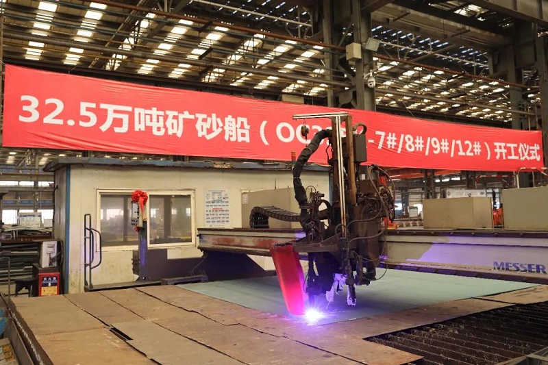 ????32.5萬噸礦砂船船長340米,型寬62米,型深29.5米,結(jié)構(gòu)吃水21.4米,續(xù)航能力25500海里。此次開工儀式在北船重工聯(lián)合廠房切割區(qū)進行,以視頻連線的方式全程向船東直播。(孫德浩 蘆風軍供稿)
