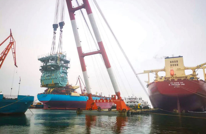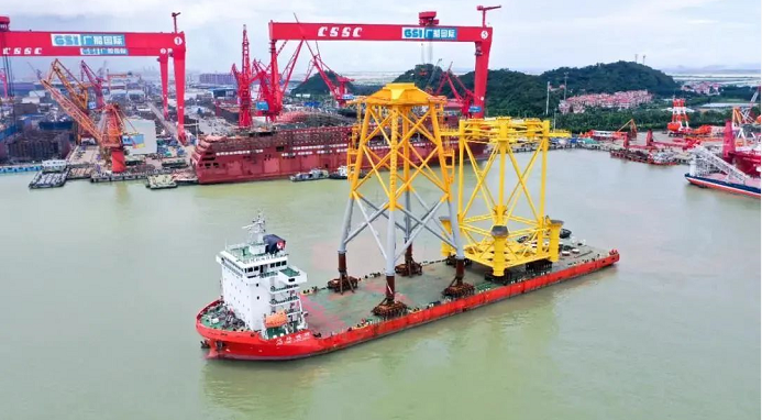 日前,由中國船舶集團(tuán)旗下廣船國際承建的廣東陽江南鵬島300兆瓦海上風(fēng)電項目首套導(dǎo)管架及輔助平臺順利交運(yùn)。這是廣船國際承建并交運(yùn)的首批首個風(fēng)電導(dǎo)管架,也是目前國內(nèi)最大的風(fēng)電導(dǎo)管架,標(biāo)志著廣船國際在風(fēng)電業(yè)務(wù)領(lǐng)域?qū)崿F(xiàn)了經(jīng)營、生產(chǎn)、交付全環(huán)節(jié)突破,對后續(xù)承接風(fēng)電項目業(yè)務(wù)、拓展風(fēng)電市場具有重要意義。