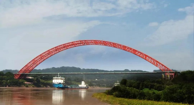 2002年1月, 簽訂巫山長(zhǎng)江大橋合同。巫山長(zhǎng)江大橋位于長(zhǎng)江三峽段的巫峽入口處,是一座鋼管中承式拱橋,橋面凈寬19米,雙向4車道,主跨492米,被稱為"渝東門戶橋""渝東第一橋",創(chuàng)造了多項(xiàng)世界紀(jì)錄。