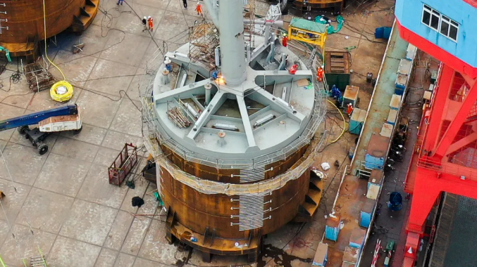 7月31日,廣船國(guó)際建造的我國(guó)第一臺(tái)吸力筒導(dǎo)管架風(fēng)機(jī)基礎(chǔ),在廣州南沙成功發(fā)運(yùn)。吸力筒導(dǎo)管架是海上風(fēng)電場(chǎng)的基礎(chǔ)設(shè)備,這次交付的吸力筒導(dǎo)管架總高63米,足有20層樓的高度,總重量約為1560噸,相當(dāng)于15輛重型卡車滿載的重量,由3個(gè)直徑約為13米、高約11米的吸力筒和高52米的上部導(dǎo)管架組成。