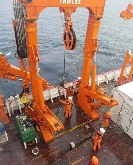 日前,在執(zhí)行中國(guó)第11次北極科學(xué)考察的“雪龍2”號(hào)經(jīng)過(guò)近4小時(shí)的奮戰(zhàn),利用重力活塞取樣器在北冰洋北風(fēng)海盆(Northwind Basin)內(nèi)1870米水深處成功取得柱狀沉積物巖心樣品18.65米,創(chuàng)造了我國(guó)北極科考的新紀(jì)錄。