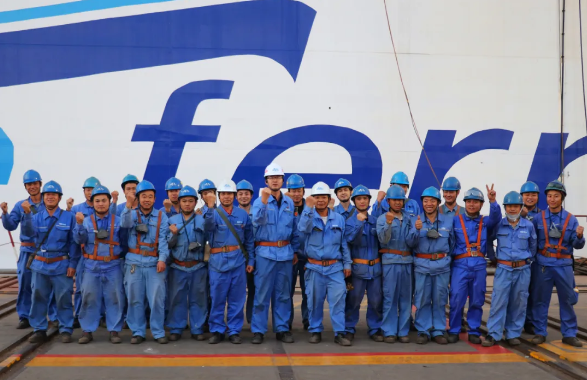 中國船舶集團(tuán)旗下廣船國際建造的阿爾及利亞客滾船進(jìn)入交船前的最后沖刺階段!