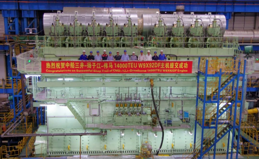 CMD-WinGD 9X92DF雙燃料主機(jī)最大功率42560kW,由中船動(dòng)力集團(tuán)下屬溫特圖爾發(fā)動(dòng)機(jī)有限公司研發(fā),上海中船三井造船柴油機(jī)有限公司生產(chǎn)制造,將安裝在14000TEU集裝箱船上。