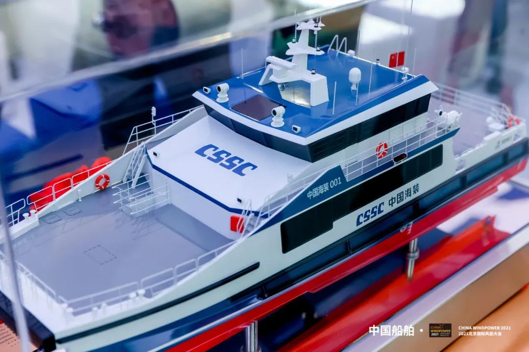 在本屆風(fēng)能大會(huì)上,中國海裝與遠(yuǎn)舟科技聯(lián)合設(shè)計(jì)制造的國內(nèi)首艘30米級(jí)專業(yè)風(fēng)電運(yùn)維船發(fā)布。投運(yùn)后,該船將與中船海工101海上風(fēng)電安裝平臺(tái)一道,為海上運(yùn)維“保駕護(hù)航”。