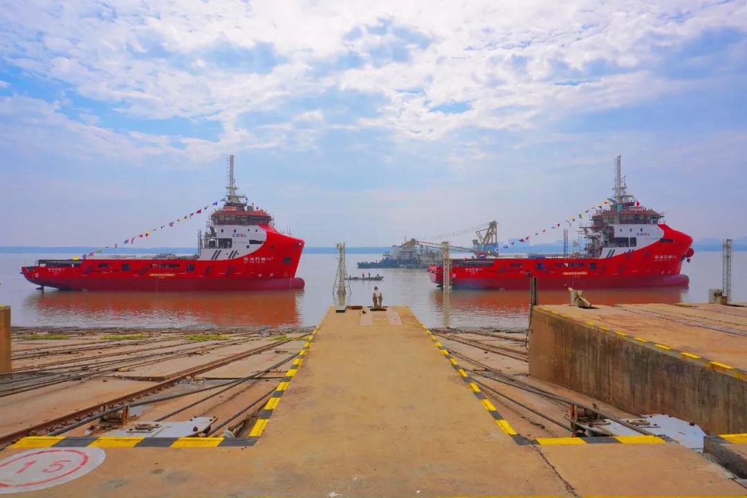 10月26日上午,中國(guó)船舶集團(tuán)旗下武船集團(tuán)為中海油田服務(wù)股份有限公司建造的兩型4000馬力LNG動(dòng)力守護(hù)供應(yīng)船3號(hào)船“海洋石油542”和“海洋石油547”下水。