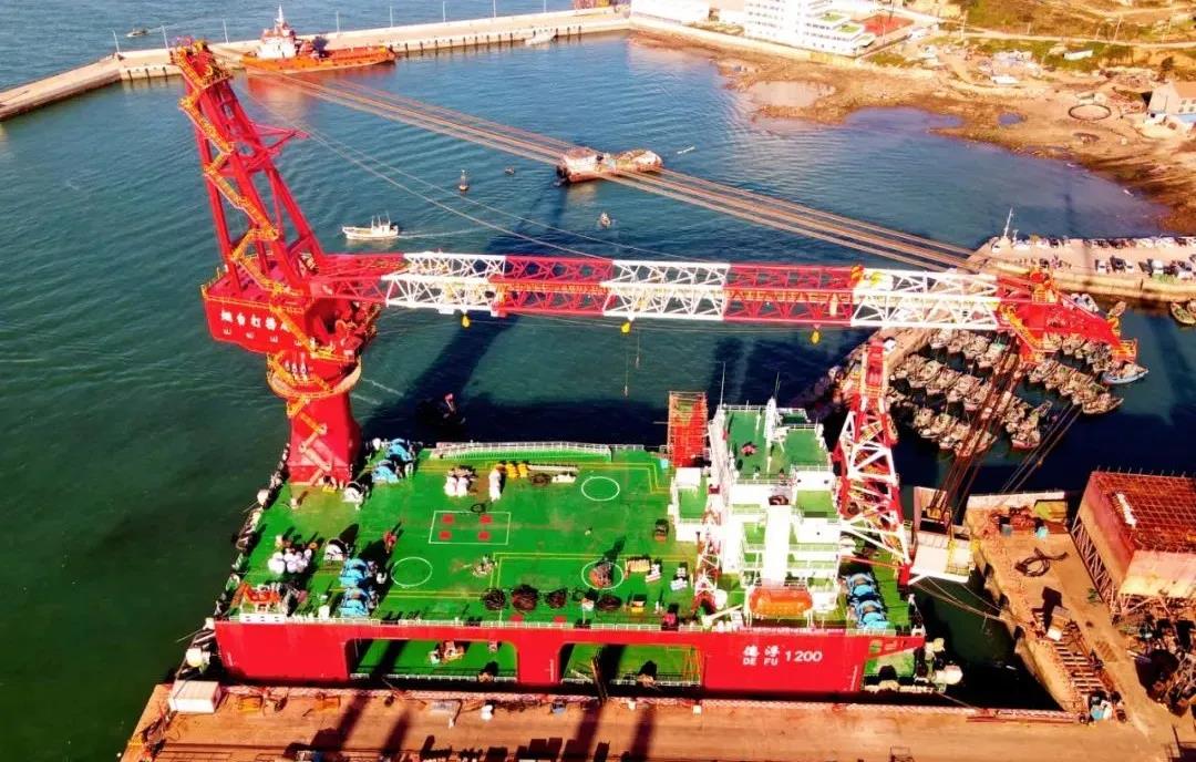 海西重機(jī)為“德浮1200”提供最主要的起重設(shè)備,起重能力達(dá)1200噸,相當(dāng)可同時(shí)吊起800輛小汽車的總重量,全回轉(zhuǎn)起重能力達(dá)1000噸。起重設(shè)備將服務(wù)“德浮1200”用于近海及淺水水域的風(fēng)機(jī)安裝施工及打撈起重作業(yè)以及無限航區(qū)拖航。