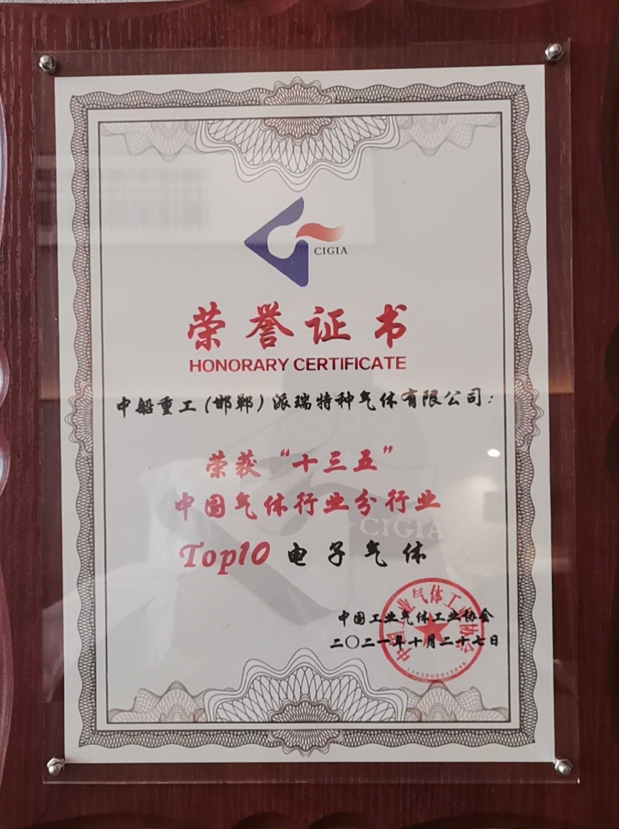 中國船舶集團(tuán)旗下七一八所所屬派瑞特氣公司,近日榮獲中國工業(yè)氣體工業(yè)協(xié)會評選的“十三五”中國氣體行業(yè)分行業(yè)電子氣體10強、“十三五”中國氣體行業(yè)50強企業(yè)榮譽稱號,以及2021年氣體行業(yè)專利獎金獎。