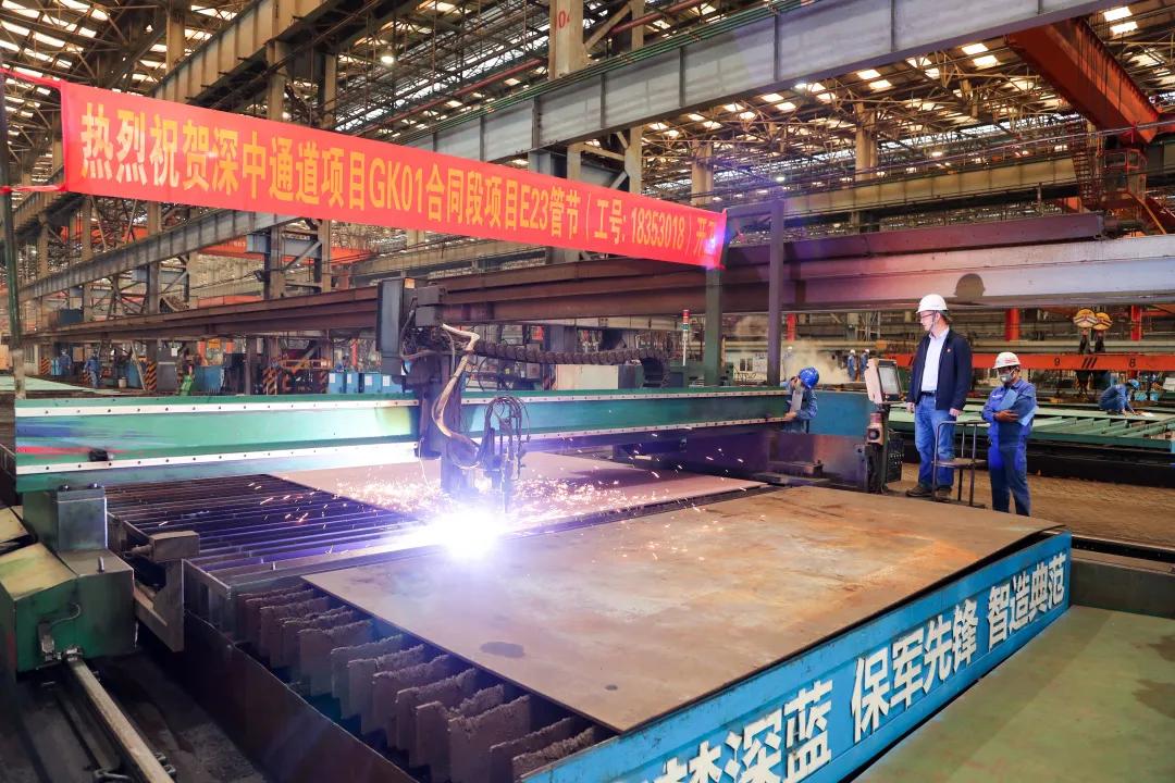 自項(xiàng)目開工以來(lái),廣船國(guó)際與黃埔文沖積極推進(jìn)智能制造技術(shù)應(yīng)用,構(gòu)建了以鋼材智能切割生產(chǎn)線、小組立(片體)智能焊接生產(chǎn)線、中組立(塊體)智能焊接生產(chǎn)線、智能涂裝車間及車間管控系統(tǒng)等為核心的“四線一系統(tǒng)”鋼殼智能制造,助力鋼殼管節(jié)百年品質(zhì)工程打造,助推深中通道工程高質(zhì)量建設(shè)。