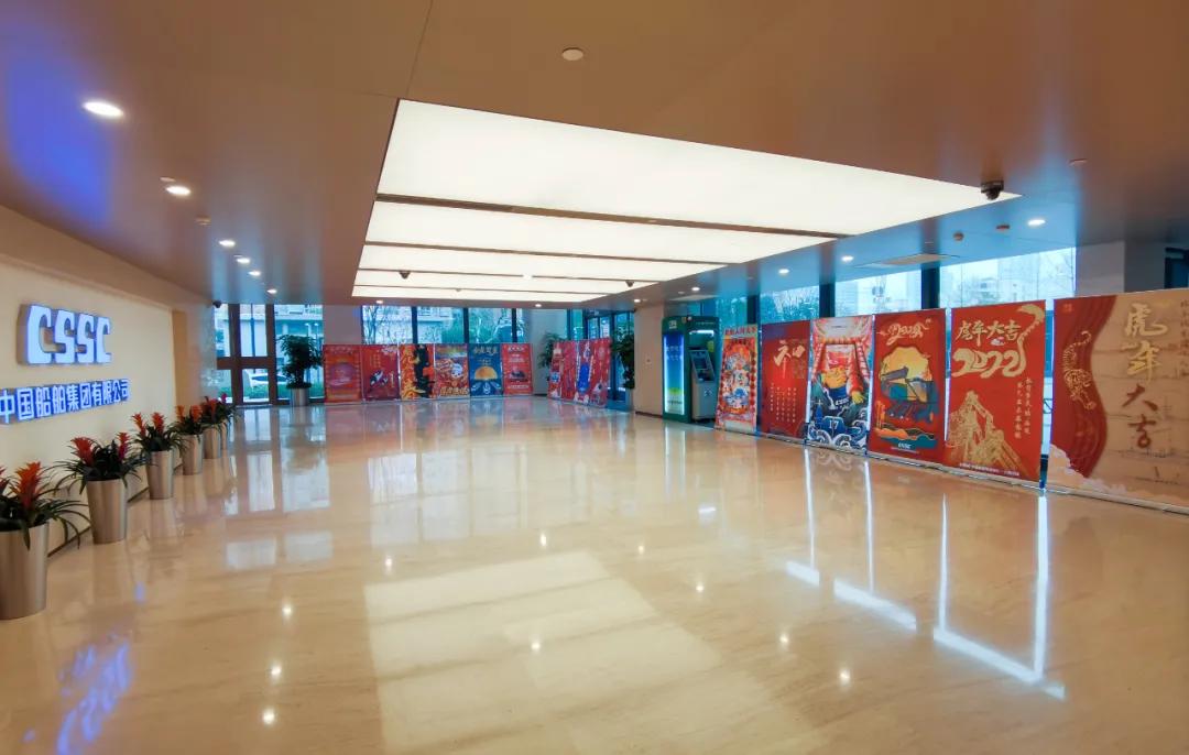 節(jié)日的煙花詮釋喜慶,大紅的燈籠點(diǎn)亮祝福!黃旭華院士作為七一九所典型人物代表,認(rèn)真注視著他為之奉獻(xiàn)一生的艇,也反映了這條戰(zhàn)線上科技工作者們“團(tuán)結(jié)、求實(shí)、創(chuàng)新、奉獻(xiàn)”的工作作風(fēng)?!盀榫粨?鵬摶九天”暗藏“一九”二字,反映出七一九所肩負(fù)的責(zé)任之大,使命之重,表達(dá)了軍工人將船舶事業(yè)做大做強(qiáng)的決心。