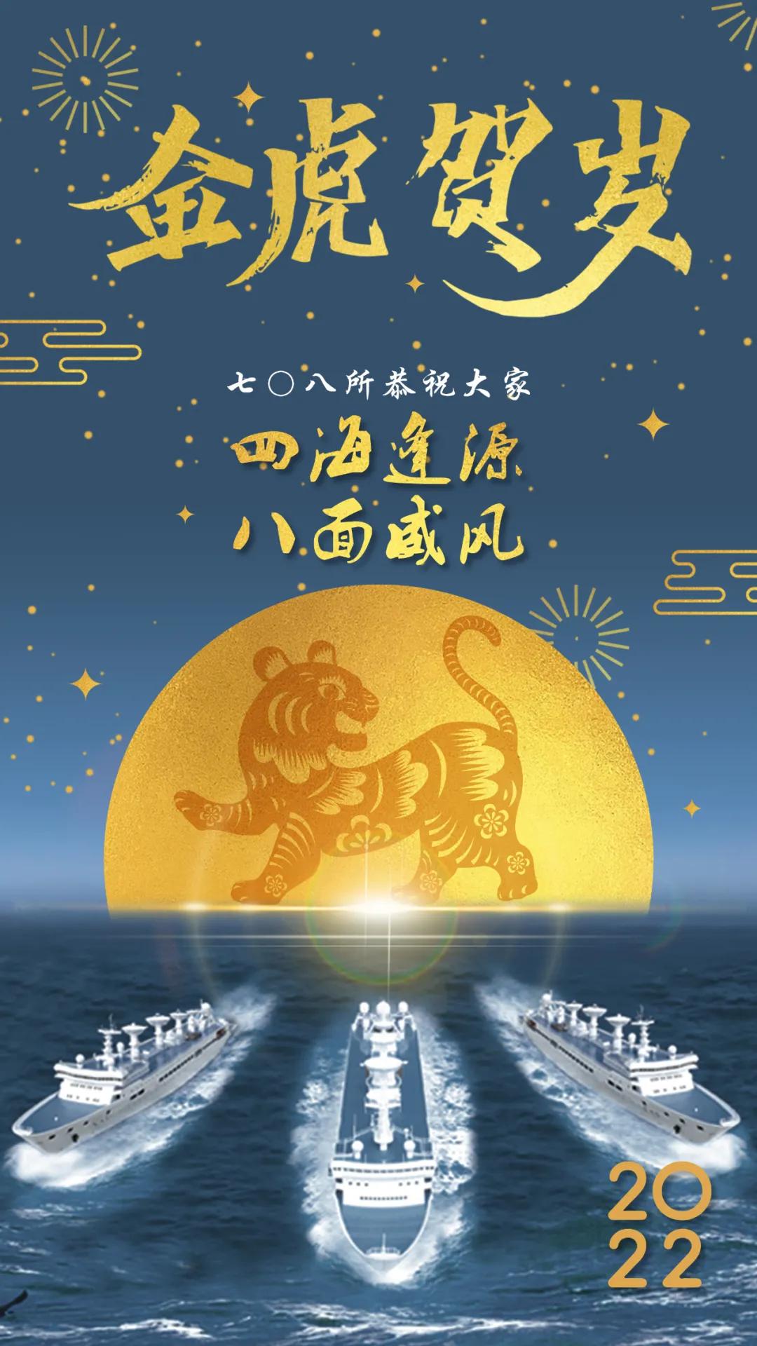 海報(bào)以七〇八所自主研發(fā)設(shè)計(jì)的遠(yuǎn)望號船隊(duì)、金虎、星空、月亮為元素創(chuàng)作,彰顯祖國浩瀚海疆、無垠星空的安寧祥和。四十余年來,遠(yuǎn)望號船隊(duì)劈波斬浪,守護(hù)著祖國的花好月圓。從遠(yuǎn)望一號至遠(yuǎn)望七號,凝結(jié)著幾代中國船舶人的智慧和汗水,堅(jiān)守一方“浮動(dòng)國土”。