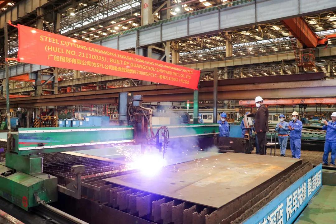 2月18日,廣船國際為挪威SFL公司建造的7000車雙燃料汽車運(yùn)輸船(PCTC)首制船舉行開工儀式,這是華南地區(qū)建造的首艘雙燃料汽車運(yùn)輸船,也是廣船國際春節(jié)后開工建造的第一艘船。