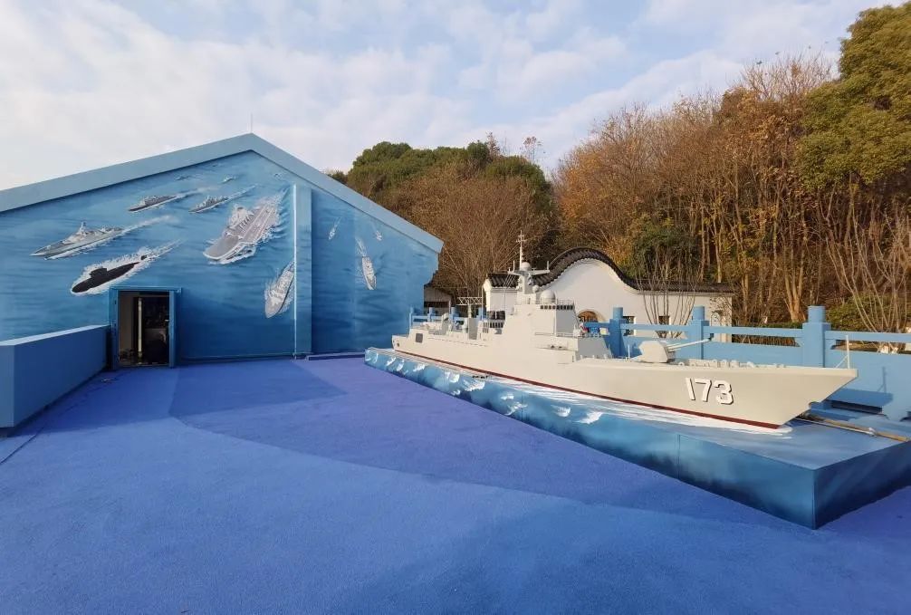 由中國船舶七一四所設(shè)計(jì)施工的艦船打卡地,有著10米長的大型長沙艦?zāi)P?,重達(dá)8.75噸的船錨昂首挺立,45艘包括航母、核潛艇、驅(qū)逐艦、護(hù)衛(wèi)艦在內(nèi)的各型艦船武器模型,200多幅圖片文字,為觀眾展示了近代以來海軍裝備波瀾壯闊的發(fā)展歷程。