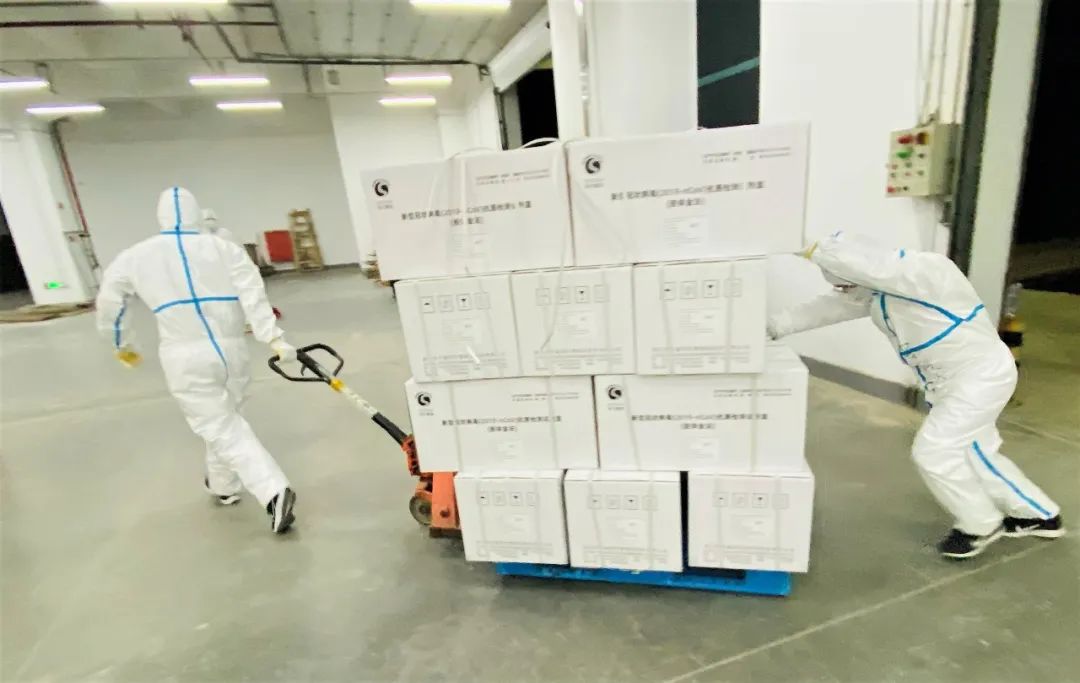 18名志愿隊員充分發(fā)揮抗疫有我的奉獻精神,一直工作到晚上11點。連續(xù)奮戰(zhàn),志愿者們早已渾身濕透,雙手也已露出深深的勒痕,但是大家沒有絲毫抱怨和懈怠,只想第一時間把物資運送到最需要的地方,用實際行動為抗擊疫情貢獻力量。他們先后共完成了1100萬盒抗原檢測試劑盒和100萬只醫(yī)用口罩的分揀、轉運、入庫工作。