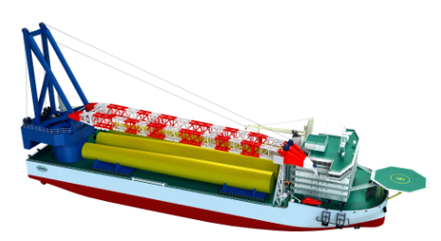 該船船長(zhǎng)186米,寬48米,型深16米,滿載排水量約90000余噸。起重機(jī)采用單舷側(cè)布置設(shè)計(jì),起吊高度可達(dá)主甲板以上145米,相當(dāng)于50層摩天大廈。還配備有DP2級(jí)動(dòng)力定位系統(tǒng),可實(shí)現(xiàn)深遠(yuǎn)??焖佟⒕_定位。能夠在海上風(fēng)電場(chǎng)進(jìn)行各項(xiàng)風(fēng)電工程作業(yè),主要包括10兆瓦及以下海上風(fēng)機(jī)的基座、支撐塔架、機(jī)艙及葉片的吊裝和風(fēng)機(jī)基礎(chǔ)等施工作業(yè),以及其他海上吊裝或支持作業(yè)。