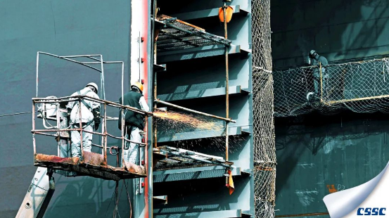 在30萬(wàn)噸VLCC施工現(xiàn)場(chǎng),大船人正在進(jìn)行艏艉兩大段合攏口部位的精度修正作業(yè)。該作業(yè)方式是大船集團(tuán)經(jīng)過(guò)多年建造經(jīng)驗(yàn),通過(guò)三維數(shù)據(jù)管理、吊裝精度控制、環(huán)形段高精度切割等多種多部門協(xié)調(diào)后達(dá)到一次對(duì)接,標(biāo)志大船集團(tuán)已完全掌握高難度高精度的合攏方式,在國(guó)際上富有極高的競(jìng)爭(zhēng)力。