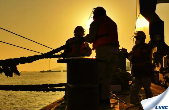 迎著朝陽(yáng),中船澄西船舶修造有限公司的帶纜工人們齊心協(xié)力,正在為一艘化學(xué)品船離泊解纜。