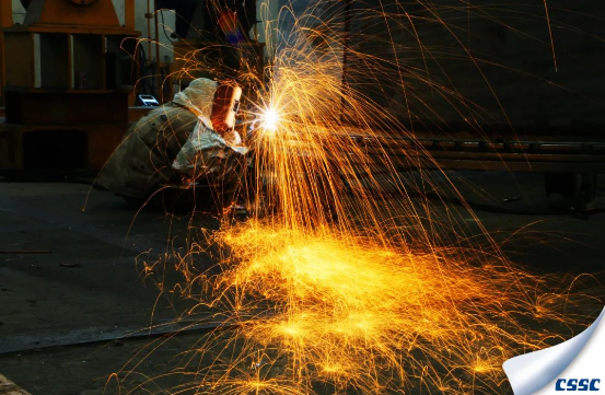 我不知道你是誰(shuí),我卻知道你為了誰(shuí)。中國(guó)船柴宜柴公司鋼構(gòu)廠一名電焊工為了保節(jié)點(diǎn)、搶進(jìn)度,正在加班加點(diǎn)焊接產(chǎn)品。