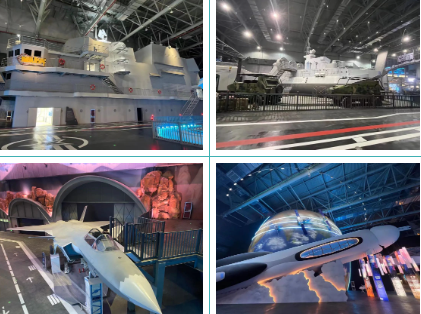 以先進(jìn)武器裝備為原型,館內(nèi)建有全比例、高比例航母艦島、核潛艇、奮斗者號(hào)載人深潛器、殲20飛機(jī)、運(yùn)20飛機(jī)、天宮空間站、星火號(hào)宇宙飛船、99A坦克等,集成聲光電、虛擬現(xiàn)實(shí)、動(dòng)感平臺(tái)等對(duì)標(biāo)國(guó)際一線主題樂(lè)園的體驗(yàn)技術(shù),采用多種體驗(yàn)形式和手段,編制精彩成長(zhǎng)歷險(xiǎn)故事,以主題游樂(lè)、研學(xué)教育、科普展示、文創(chuàng)商業(yè)等多種業(yè)態(tài),為游客帶來(lái)一場(chǎng)高科技、新技術(shù)的軍事主題沉浸體驗(yàn)。