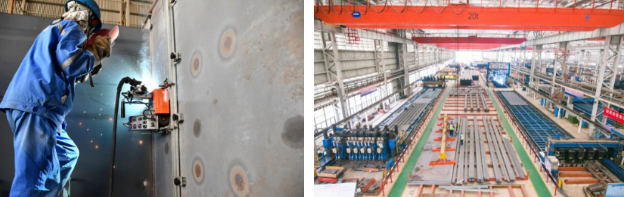 以U肋雙面全熔透焊接技術(shù)和先進(jìn)視覺識(shí)別焊接機(jī)器人技術(shù)為基礎(chǔ),全新規(guī)劃了國內(nèi)建設(shè)規(guī)模最大、建設(shè)標(biāo)準(zhǔn)最高、配套最完善的橋梁板單元智能制造車間,解決鋼橋正交異性鋼橋面板結(jié)構(gòu)疲勞病害等技術(shù)難題。
