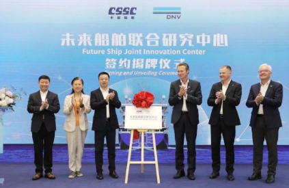 6月19日,中國(guó)船舶集團(tuán)旗下上海船舶研究設(shè)計(jì)院(簡(jiǎn)稱上船院)與DNV集團(tuán)旗下挪威船級(jí)社中國(guó)有限公司(簡(jiǎn)稱DNV)聯(lián)合創(chuàng)建的中國(guó)首個(gè)“未來(lái)船舶聯(lián)合研究中心”在上海正式揭牌,共同打造國(guó)際化技術(shù)創(chuàng)新合作平臺(tái)。這是雙方攜手推動(dòng)戰(zhàn)略合作關(guān)系逐步走深、走實(shí)的又一重要舉措,也是具有里程碑意義的全方位戰(zhàn)略合作又一成果,必將成為全球海事應(yīng)對(duì)脫碳與數(shù)字化轉(zhuǎn)型開展前瞻性地國(guó)際化協(xié)作的典范。中國(guó)船舶集團(tuán)黨組成員、副總經(jīng)理盛紀(jì)綱,DNV海事首席執(zhí)行官柯努特(Knut ?rbeck-Nilssen)為聯(lián)合研究中心揭牌并致辭。
